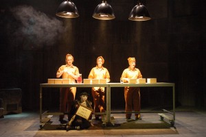 The play is set from May to August 1945 during the hundred days between VE Day and VJ Day. It focuses on a group of ordinary working class Nottingham women, their sacrifices and suffering coping with the deprivations and heartache wrought by the war. With the coming of peace there is hope for a different kind of future. The set reflected the grey harshness of their world, the “make do and mend” of the war years, whilst also invoking the hardships of the battlefields and bombings endured by those on both sides.