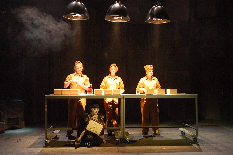 This play was first performed at the Chichester Festival Theatre in August 2005 to mark the 400th anniversary of the Gunpowder Plot: England is riven between Catholics and Protestants, and an aristocratic group of young religious fanatics have recruited a mercenary (GuyFawkes) to strike at the heart of the English government. But under the ambivalent rule of the newly crowned King James I, fresh from Scotland, no one can be trusted and their plot is turned against the very people it was meant to save. In our version for The Mack Theatre the set was a series of stark, modern industrial steps and levels, so that the many different scenes and settings could easily play over each other and cross between each other as the text demanded. The costumes mixed a modern/punk/New Romantic aesthetic with 17th century period details.
