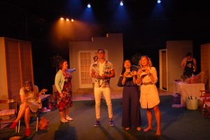 One of Shakespeare’s most frequently performed comedies, in our version the action took place during a long hot Summer in the 1950s, on the Sicilian estate of a retired Mafia Don. This was one of three Shakespeare shows in the Karamel Club that utilised a specially designed steel structure around a raised stage that could be dressed in different ways for different shows. The staging and steps could also be re-arranged in different configurations depending on requirements.